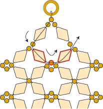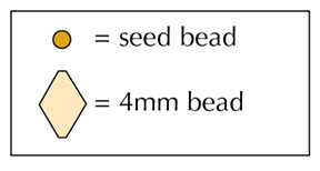 CRISSCROSS BRACELET (©2004, updated 2025 Deborah Roberti) An easy right angle weave tutorial, using size 11/0 seed beads and pretty much any type of 4mm bead you prefer. This pattern was updated in 2025 to include substitution instructions for using larger beads—size 8/0 seed beads and size 6mm beads! MATERIALS (for a 7-inch bracelet, not including clasp) Step 1: Thread your needle with a length of FireLine that you feel comfortable working with and add more as you need it. String a seed bead, a 4mm bead, a seed bead, a 4mm bead, a seed bead, a 4mm bead, a seed bead and a 4mm bead. Leaving about a 12-inch tail for attaching one end of your clasp, tie the beads in a circle with a double knot: Step 2: Go back around through the beads highlighted in RED: Step 3: String three seed beads. Go around and back down through the seed bead you that exited at the end of the last step (highlighted in RED), forming a picot of four seed beads: Go back around through this picot of beads (highlighted in RED) and pull tight: Step 4: Go back around through the 4mm bead, the seed bead, the 4mm bead and the seed bead highlighted in RED: Step 5: String three seed beads. Go around and back up through the seed bead that you exited at the end of the last step (highlighted in RED), forming another picot of four seed beads: Go back around through this picot of beads (highlighted in RED) and pull tight: Step 6: Go through the next two seed beads on the picot (highlighted in RED): Step 7: String a 4mm bead, a seed bead, a 4mm bead, a seed bead, a 4mm bead, a seed bead and a 4mm bead. Go around and back down through the seed bead that you exited at the end of the last step (highlighted in RED): To add some extra strength to your bracelet, go back around through the beads that you just added (highlighted in RED): Step 8: Go back around through the 4mm bead, the seed bead, the 4mm bead and the seed bead highlighted in RED: Step 9: String three seed beads. Go around and back up through the seed bead that you exited at the end of the last step (highlighted in RED), forming another picot of four seed beads: Go back around through this picot of beads (highlighted in RED) and pull tight: Step 10: Go back up through the 4mm bead and the seed bead above (highlighted in RED): You’ve just created Row 1 of the bracelet. Step 11: Flip the bracelet over horizontally so that you can continue to work left to right, which is how the directions are written: Step 12: To begin Row 2, string a 4mm bead, a seed bead, a 4mm bead, a seed bead, a 4mm bead, a seed bead and a 4mm bead. Go around and back across through the seed bead that you exited at the end of the last step (highlighted in RED): Go back around through the beads that you just added (highlighted in RED): Step 13: Go back around through the 4mm bead, the seed bead, the 4mm bead, the seed bead, the 4mm bead and the seed bead above (highlighted in RED): Step 14: String three seed beads. Go around and back down through the seed bead that you exited at the end of the last step (highlighted in RED), forming another circle of four seed beads: Go back around through this picot of beads (highlighted in RED) and pull tight: Step 15: Go back around through the 4mm bead, the seed bead, the 4mm bead and the seed bead below (highlighted in RED): Step 16: String three seed beads. Go around and back up through the seed bead that you exited at the end of the last step (highlighted in RED), forming another picot of four seed beads: Go back around through this picot of beads (highlighted in RED) and pull tight: Step 17: Go through the next two seed beads on the picot (highlighted in RED): Step 18: String a 4mm bead. Go across through the rightmost top seed bead on the row below (highlighted in RED): Step 19: String a 4mm bead, a seed bead, a 4mm bead, a seed bead and a 4mm bead. Go around and down through the rightmost seed bead on the top middle picot (highlighted in RED): Step 20: Go back around through the 4mm bead, the seed bead, the 4mm bead and the seed bead below (highlighted in RED): Go back around through the beads highlighted in RED: Step 21: String three seed beads. Go around and back up through the seed bead that you exited at the end of the last step (highlighted in RED), forming another picot of four seed beads: Go back around through this picot of beads (highlighted in RED) and pull tight: Step 22: Go back up through the 4mm bead and the seed bead above (highlighted in RED): You’ve just created the next row. You will repeat Steps 12 to 23 to create additional rows next. Step 23: Flip the bracelet over horizontally so that you can continue to work left to right, which is how the directions are written: Step 24: Repeat Step 12 to 23 until your bracelet is as long as you want, minus about a half-inch and the length of your clasp: Step 25: To attach the clasp, go around through the 4mm bead, the top seed bead on the middle picot and the 4mm bead highlighted in RED: Step 26: String a seed bead, a 4mm bead and two seed beads. Go through the clasp and then back down through the seed bead that you just strung: NOTE: To make your bracelet longer, just add more beads than directed in this step and the next. Step 27: String a seed bead, a 4mm bead and a seed bead. Go back across through the 4mm bead, the top seed bead on the middle picot and the 4mm bead highlighted in RED: Step 28: Go back around through the beads highlighted in RED and the clasp several times: Weave back into the bracelet, knot in several places and then cut your thread. Step 29: To attach the clasp to the other end of your band, thread your needle with the tail thread from Step 1. Go around through the beads highlighted in RED and repeat Step 26 to 28: