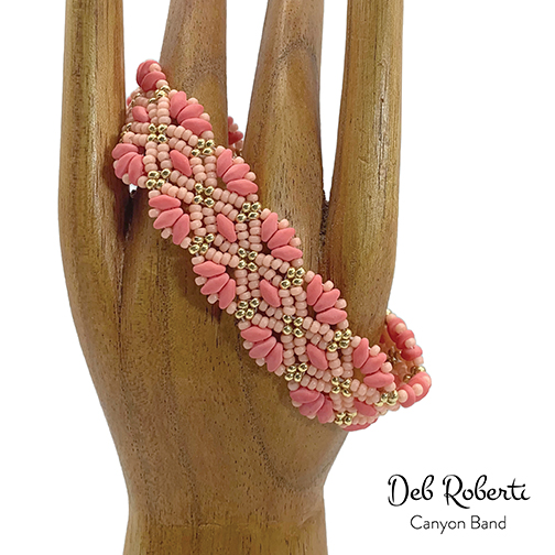 This textured variation of my Rattan Band uses SuperDuo beads and two colors of Miyuki size 11/0 seed beads, often referred to as “rocaille” seed beads. Detailed step-by-step directions from start to finish. Some matching Canyon Earrings are available by clicking HERE. Stitch: Various Beads Used: Size 11/0 Miyuki rocaille seed beads and SuperDuo beads Approx Finished Size: About .75 inches wide to desired length Pattern Price (Downloadable PDF only): $4.50 Payable through Paypal or major credit card for instant PDF download. NOTE: PDF download links are sent to the email address that you supply during purchase. If you have any problems downloading your PDF pattern purchase (this can sometimes happen if you are using a mobile device or tablet), please email me at Deb@AroundTheBeadingTable.com and I am more than happy to email your PDF pattern purchase to you. My patterns are also available for sale at: Beads used in my photos NOTE: Bead colors and coatings (and even bead types!) seem to be disappearing at a rate that I can no longer keep up with. I try to find substitutes when I can but "discontinued" seems to be the norm these days.