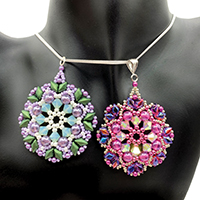 This pattern is fully illustrated with detailed step-by-step instructions for making earrings or a pendant using size 11/0 and 8/0 Miyuki (rocaille) seed beads, 3mm fire-polished beads, 8mm beads (round bead or fire-polished) and GemDuo (or DiamonDuo) beads. Another easy, fun stash-buster project! New for July, 2024: Use Matubo Mini GemDuo beads, size 11/0 and 15/0 Miyuki (rocaille) seed beads and 6mm beads for some substantially smaller earrings—just an inch high, not including findings.