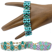 Beads Used: Size 11/0 and 8/0 Miyuki (rocaille) seed beads, 3mm fire-polished beads, 8mm beads (round bead or fire-polished) and GemDuo (or DiamonDuo) beads.