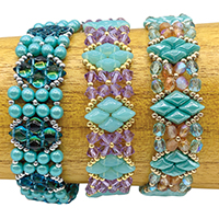Use Miyuki 11/0 seed beads, 3mm round and fire-polished beads and Matubo GemDuo (or DiamonDuo) beads to create this lacy band that looks intricate but is an easy repeat of about 17 steps. Detailed step-by-step directions from start to finish. Stitch: Various Beads Used: Size 11/0 Miyuki (rocaille) seed beads, 3mm round and fire-polished beads, Matubo GemDuo beads (or DiamonDuo beads) Approx Finished Size: About 1.25 inches wide to desired length Pattern Price (Downloadable PDF only): $4.25 Payable through Paypal or major credit card for instant PDF download. NOTE: PDF download links are sent to the email address that you supply during purchase. If you have any problems downloading your PDF pattern purchase (this can sometimes happen if you are using a mobile device or tablet), please email me at Deb@AroundTheBeadingTable.com and I am more than happy to email your PDF pattern purchase to you. My patterns are also available for sale at: Beads used in my photos NOTE: Bead colors and coatings (and even bead types!) seem to be disappearing at a rate that I can no longer keep up with. I try to find substitutes when I can but "discontinued" seems to be the norm these days.