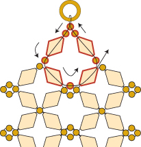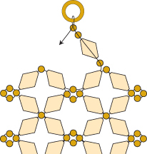 CRISSCROSS BRACELET (©2004, updated 2025 Deborah Roberti) An easy right angle weave tutorial, using size 11/0 seed beads and pretty much any type of 4mm bead you prefer. This pattern was updated in 2025 to include substitution instructions for using larger beads—size 8/0 seed beads and size 6mm beads! MATERIALS (for a 7-inch bracelet, not including clasp) Step 1: Thread your needle with a length of FireLine that you feel comfortable working with and add more as you need it. String a seed bead, a 4mm bead, a seed bead, a 4mm bead, a seed bead, a 4mm bead, a seed bead and a 4mm bead. Leaving about a 12-inch tail for attaching one end of your clasp, tie the beads in a circle with a double knot: Step 2: Go back around through the beads highlighted in RED: Step 3: String three seed beads. Go around and back down through the seed bead you that exited at the end of the last step (highlighted in RED), forming a picot of four seed beads: Go back around through this picot of beads (highlighted in RED) and pull tight: Step 4: Go back around through the 4mm bead, the seed bead, the 4mm bead and the seed bead highlighted in RED: Step 5: String three seed beads. Go around and back up through the seed bead that you exited at the end of the last step (highlighted in RED), forming another picot of four seed beads: Go back around through this picot of beads (highlighted in RED) and pull tight: Step 6: Go through the next two seed beads on the picot (highlighted in RED): Step 7: String a 4mm bead, a seed bead, a 4mm bead, a seed bead, a 4mm bead, a seed bead and a 4mm bead. Go around and back down through the seed bead that you exited at the end of the last step (highlighted in RED): To add some extra strength to your bracelet, go back around through the beads that you just added (highlighted in RED): Step 8: Go back around through the 4mm bead, the seed bead, the 4mm bead and the seed bead highlighted in RED: Step 9: String three seed beads. Go around and back up through the seed bead that you exited at the end of the last step (highlighted in RED), forming another picot of four seed beads: Go back around through this picot of beads (highlighted in RED) and pull tight: Step 10: Go back up through the 4mm bead and the seed bead above (highlighted in RED): You’ve just created Row 1 of the bracelet. Step 11: Flip the bracelet over horizontally so that you can continue to work left to right, which is how the directions are written: Step 12: To begin Row 2, string a 4mm bead, a seed bead, a 4mm bead, a seed bead, a 4mm bead, a seed bead and a 4mm bead. Go around and back across through the seed bead that you exited at the end of the last step (highlighted in RED): Go back around through the beads that you just added (highlighted in RED): Step 13: Go back around through the 4mm bead, the seed bead, the 4mm bead, the seed bead, the 4mm bead and the seed bead above (highlighted in RED): Step 14: String three seed beads. Go around and back down through the seed bead that you exited at the end of the last step (highlighted in RED), forming another circle of four seed beads: Go back around through this picot of beads (highlighted in RED) and pull tight: Step 15: Go back around through the 4mm bead, the seed bead, the 4mm bead and the seed bead below (highlighted in RED): Step 16: String three seed beads. Go around and back up through the seed bead that you exited at the end of the last step (highlighted in RED), forming another picot of four seed beads: Go back around through this picot of beads (highlighted in RED) and pull tight: Step 17: Go through the next two seed beads on the picot (highlighted in RED): Step 18: String a 4mm bead. Go across through the rightmost top seed bead on the row below (highlighted in RED): Step 19: String a 4mm bead, a seed bead, a 4mm bead, a seed bead and a 4mm bead. Go around and down through the rightmost seed bead on the top middle picot (highlighted in RED): Step 20: Go back around through the 4mm bead, the seed bead, the 4mm bead and the seed bead below (highlighted in RED): Go back around through the beads highlighted in RED: Step 21: String three seed beads. Go around and back up through the seed bead that you exited at the end of the last step (highlighted in RED), forming another picot of four seed beads: Go back around through this picot of beads (highlighted in RED) and pull tight: Step 22: Go back up through the 4mm bead and the seed bead above (highlighted in RED): You’ve just created the next row. You will repeat Steps 12 to 23 to create additional rows next. Step 23: Flip the bracelet over horizontally so that you can continue to work left to right, which is how the directions are written: Step 24: Repeat Step 12 to 23 until your bracelet is as long as you want, minus about a half-inch and the length of your clasp: Step 25: To attach the clasp, go around through the 4mm bead, the top seed bead on the middle picot and the 4mm bead highlighted in RED: Step 26: String a seed bead, a 4mm bead and two seed beads. Go through the clasp and then back down through the seed bead that you just strung: NOTE: To make your bracelet longer, just add more beads than directed in this step and the next. Step 27: String a seed bead, a 4mm bead and a seed bead. Go back across through the 4mm bead, the top seed bead on the middle picot and the 4mm bead highlighted in RED: Step 28: Go back around through the beads highlighted in RED and the clasp several times: Weave back into the bracelet, knot in several places and then cut your thread. Step 29: To attach the clasp to the other end of your band, thread your needle with the tail thread from Step 1. Go around through the beads highlighted in RED and repeat Step 26 to 28: