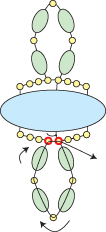 Step 30: Go back around through the seed beads highlighted in RED and your clasp several times: